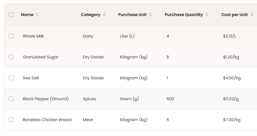 Scale recipes, control costs, and optimize inventory. Everything you need to run your food business more efficiently.
